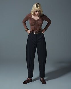 Мягкий эластичный трикотаж идеально садится по фигуре, а драпировка по центру визуально вытягивает силуэт. Тёплый шоколадный оттенок делает модель универсальной — сочетайте её с денимом, брюками с высокой талией или юбкой для более женственного акцента.